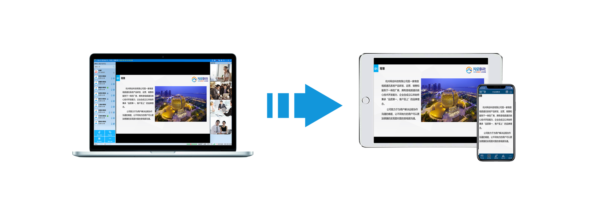 网会视频会议移动端利用手机通过4G与wifi网络连接进入会议,与网会视频会议PC版无缝互通。